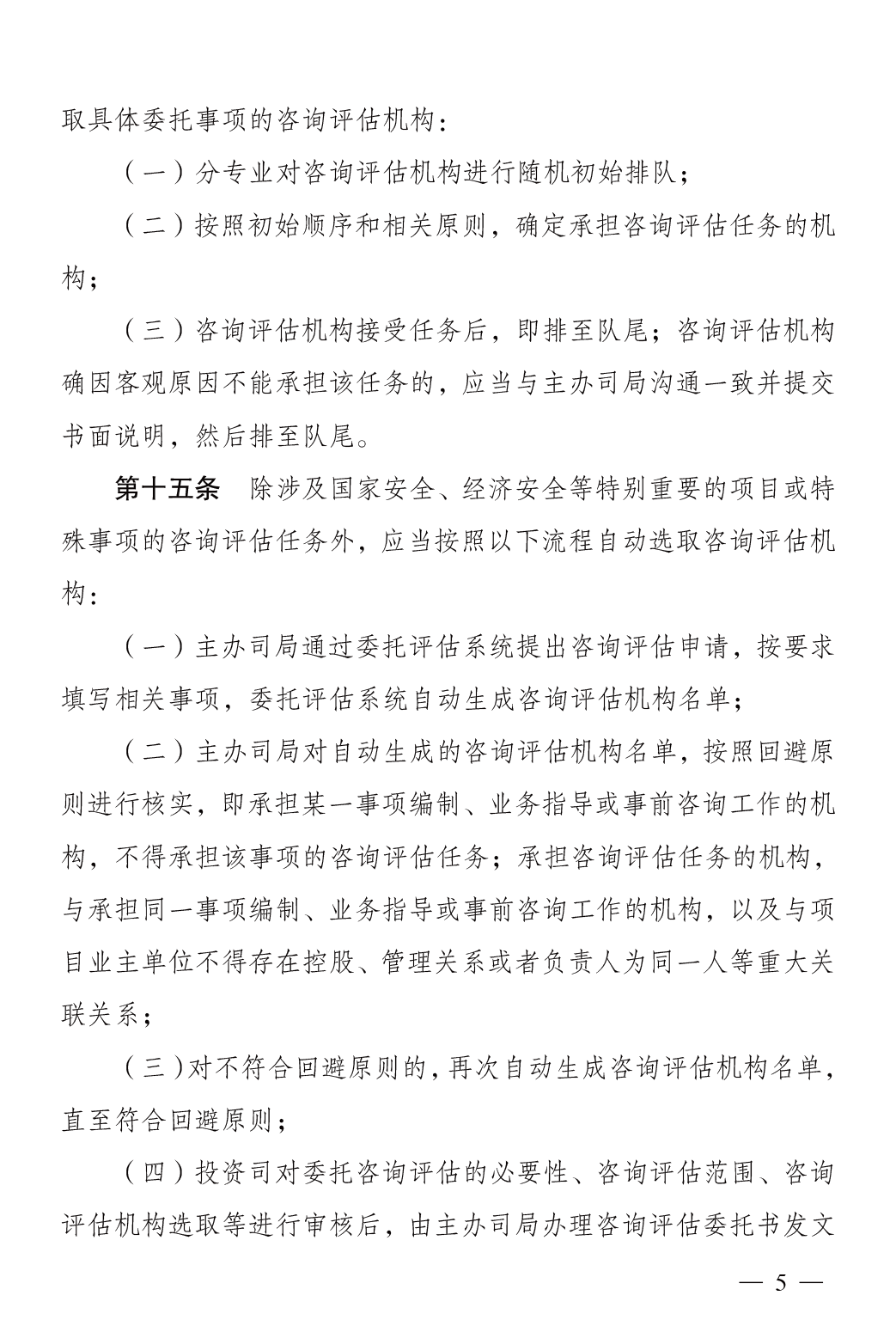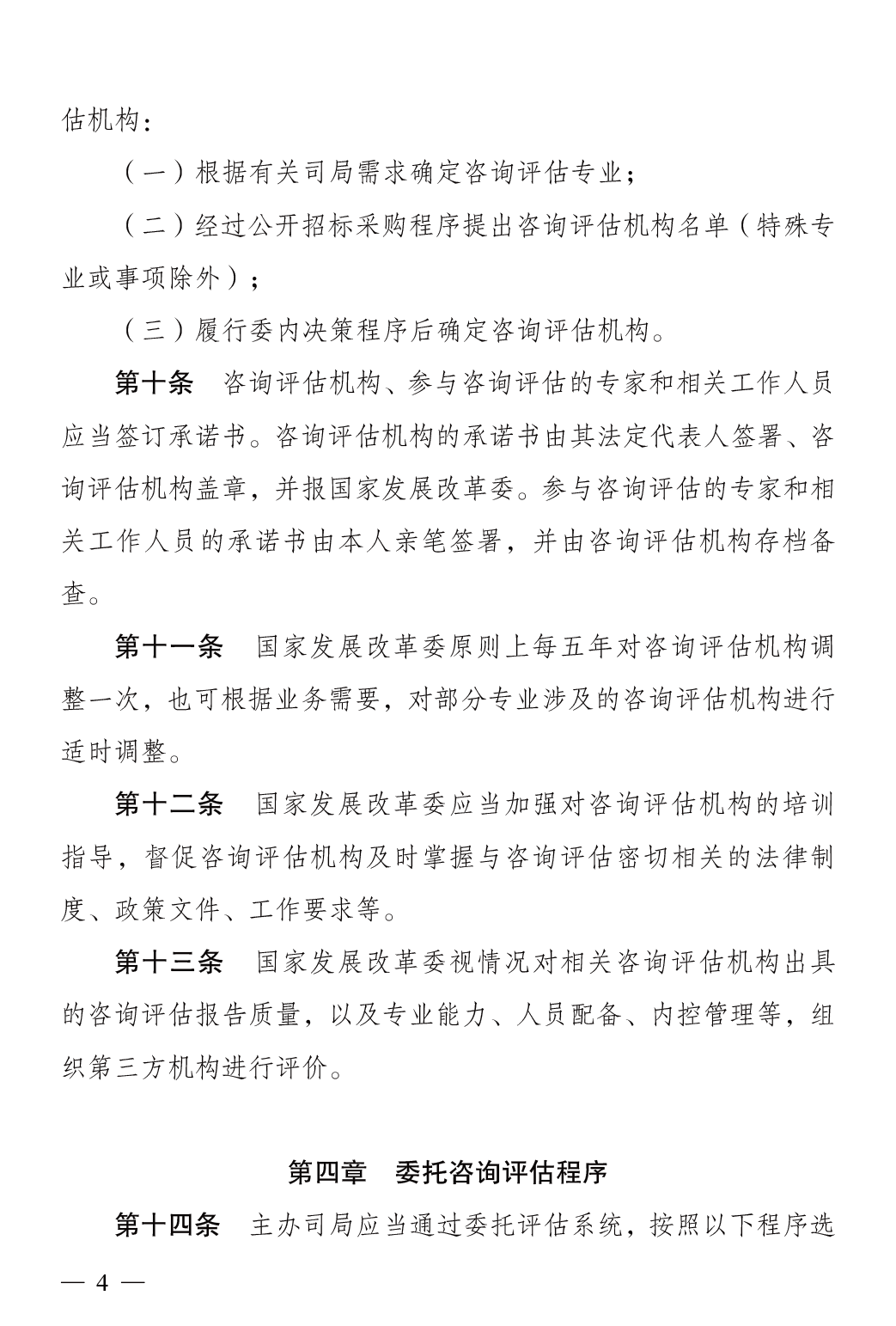 为进一步完善我委投资决策程序,提高投资决策科学化、民主化水平,规范投资决策过程中的委托咨询评估工作,我委对《国家发展改革委投资咨询评估管理办法》(发改投资规〔2022〕632号)进行了修订。现将修订后的《国家发展改革委委托投资咨询评估管理办法》印发给你们,请按照执行。